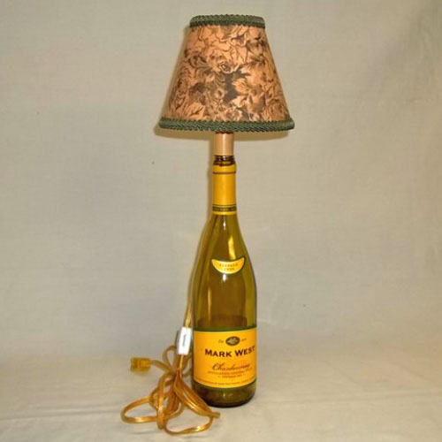 Just for fun! This is a modern wine bottle converted to a lamp. It has an in-line on/off switch and clip-on shade. This would be perfect for a bar area, rec room, kitchen, or wherever a conversation piece is needed! Measures 18 1/4″ high by 6″ across bottom of shade. Newly wired.