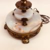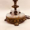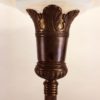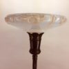 Beautiful, original 1930s torchiere floor lamp with three-way mogul bulb inside original glass shade. The mogul bulb has three settings: 50-100-150 watts (though any three-way mogul bulb would work). The shade is antique white with light brown accents. The base has two slabs of striated marble in excellent condition! It also has gorgeous details on the sides of the base (see photos). This lamp offers lots of upward-facing light and some diffused light into the room. Perfect for anywhere extra light is needed. Measures 64 3/4″ high by 16″ across the shade by 11″ across the base. Rewired.