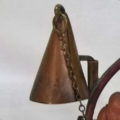 This reproduction wind-up candle lamp would be a great decorator or conversation piece! 1920s copy of a pre-1825 candle lamp with single-strand wick. Also has a finger loop for carrying, and its own candle snuffer. Stamped “SPAIN” on underside of brass base. I also recently learned that these were referred to as “wax jacks”. According to my informant, while these were sometimes used to provide light, they were more commonly used to create wax seals on letters, documents, etc. They were also used by soldiers for both purposes. Fascinating info! (Thanks, Adrienne!) Perfect for end table, mantle, bathroom counter, small shelf, etc. Measures 5 1/2″ high by 3 3/4’” diameter.