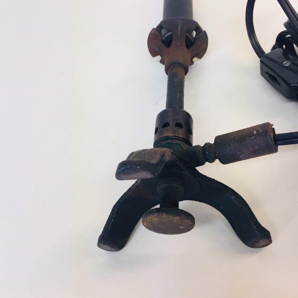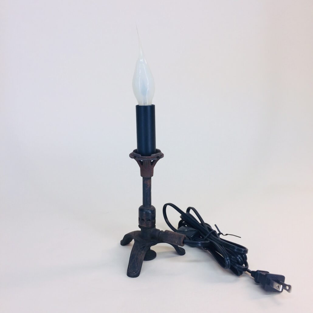 We’ve converted this cast iron scientific burner signed by Arthur H. Thomas Co. so it can live for another generation! It’s signed by the company and also says Detroit and Philadelphia on the burner. It was manufactured in the early 1900s. We added an inline switch to turn it on and off, and we used a flicker bulb to emulate a flame, but any candelabra size bulb will work. What a great collector piece! It’s also perfect for the scientist in your life who would appreciate the history represented here.