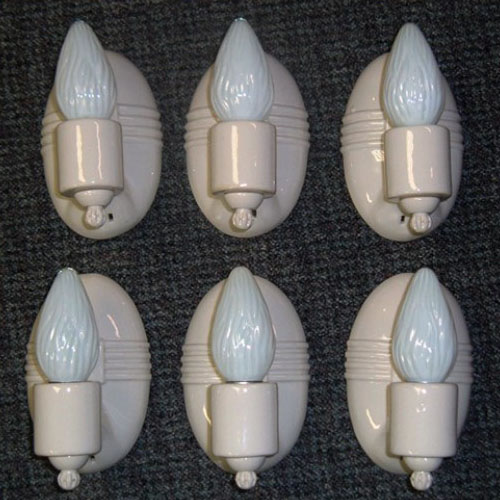 Six matching oval porcelain wall sconces