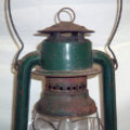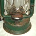 Vintage barn lantern with original green paint, signed “PAULL LEADER“, c. 1930s. Originally kerosene, now carefully converted to electric. This barn lantern would be perfect for an entrance way, stairwell, den, bedroom, three-season room, or anywhere extra light is needed. Measures 14 1/2″ tall not including the handle by 8″ wide. Newly wired.