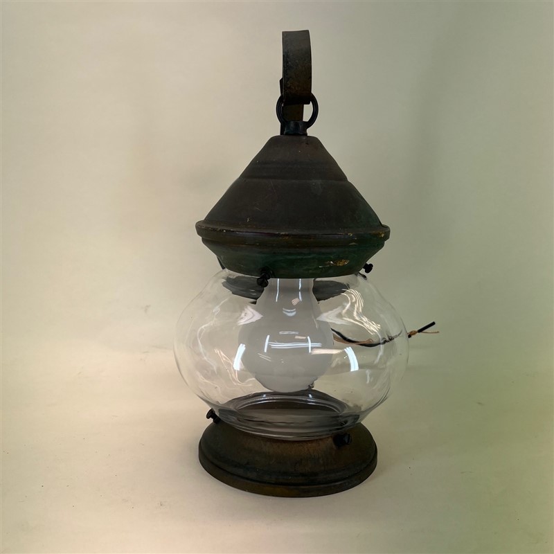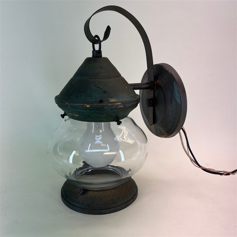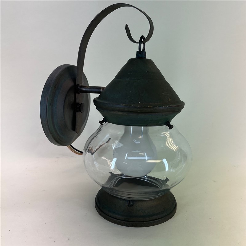 Perfect for foyer, porch, front door, back door, barn, garage, basement stairs, any rustic setting, etc. Measures 10 1/4″ high by 5 1/4″ wide by 7 1/2″ deep. Rewired with ground wire added.