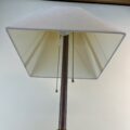 This is a real conversation piece! It could be perfect in a den, living room, office, bedroom, library, or even in a rustic setting like a cabin! It measures 62 1/2″ high (to the top of the finial) by 12″ across the square wooden crate. The crate itself stands 15″ high, and the shade is 14″ square at the bottom by 11″ tall. It’s newly wired to meet today’s electric codes.